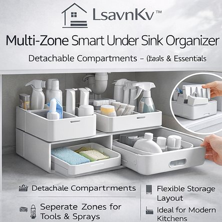 LsavnKv™ Expandable Smart Under Sink Storage Rack with Adjustable Width for Cabinets & Tight Spaces